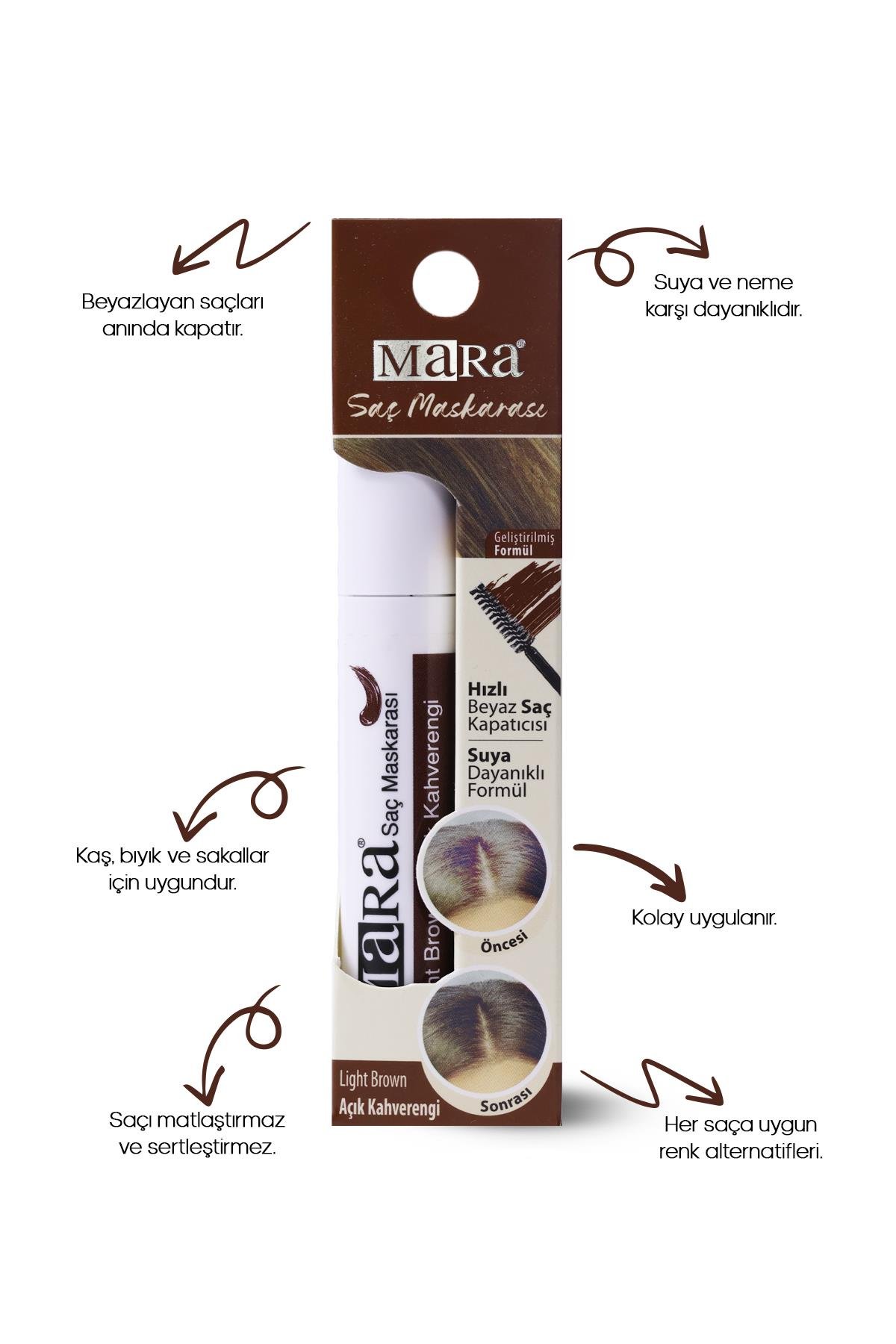 • Mara Saç Maskarası, geliştirilmiş formülü ile beyazlayan saçları anında kapatır.